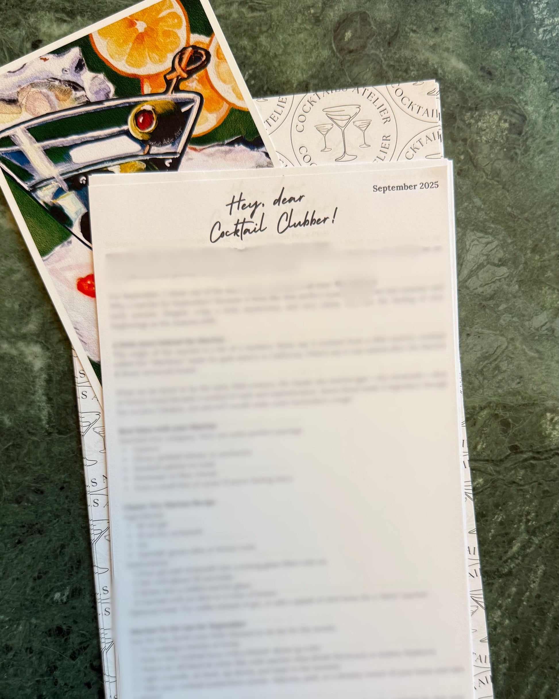SEPTEMBER'S cocktail print mail "Pearls and Olives"